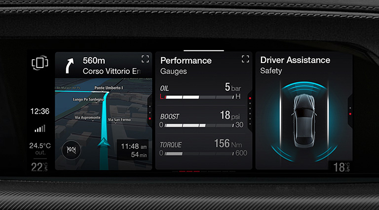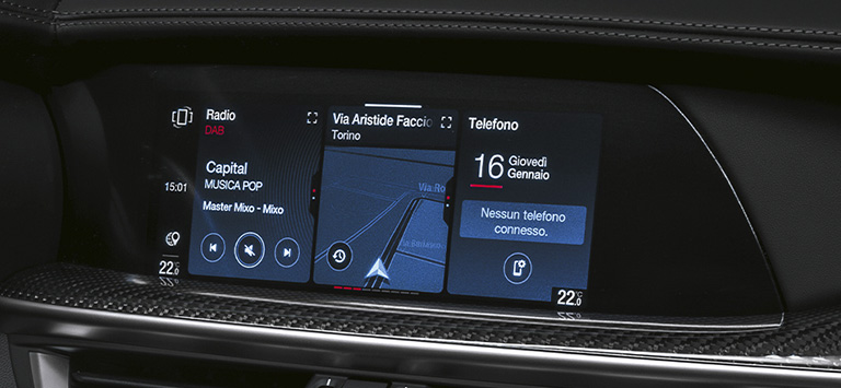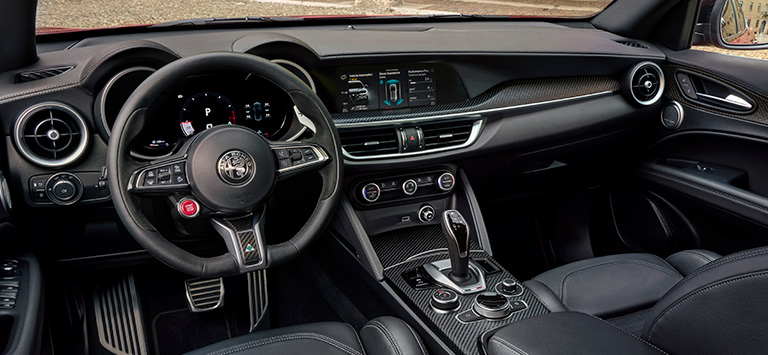Alfa Romeo Stelvio Quadrifoglio-nun məlumat-əyləncə sistemi 8,8 düymlük Multi-Touch ekrana malikdir.